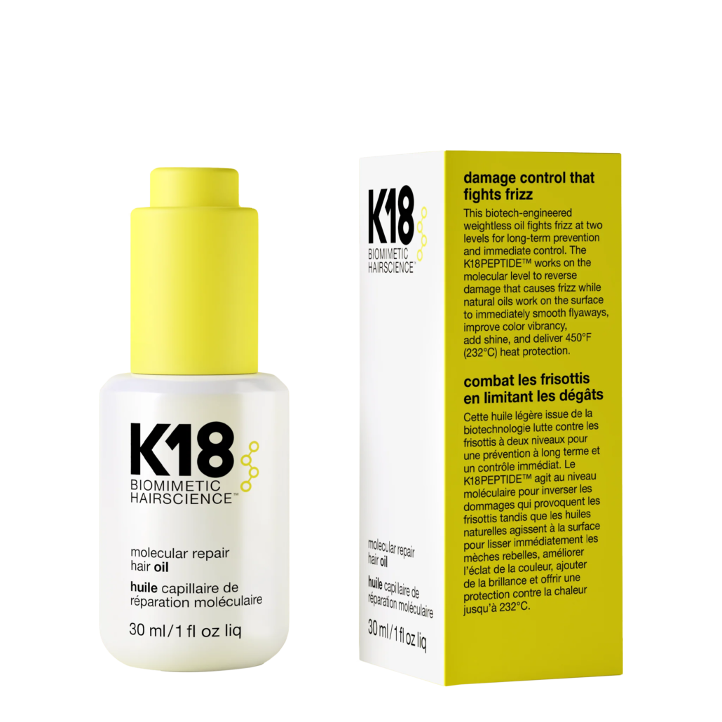K18 Molecular Repair Kuru Saçlar Bakım Yağı, kuru ve yıpranmış saçları derinlemesine onarır ve saçı besler. İçeriğindeki moleküler teknoloji sayesinde, saçı içten dışa onararak, kırılmaları engeller ve saçı güçlendirir. Saçın nem dengesini sağlar, kuruma yapmaz ve daha pürüzsüz, parlak bir görünüm kazandırır. Düzenli kullanımda saçı besler, daha sağlıklı, canlı ve yumuşak hale getirir.